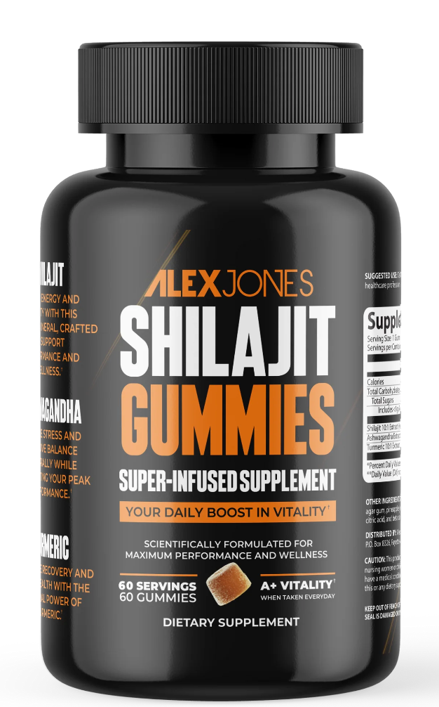 Get ready to unleash maximum vitality with Alex Jones' Shilajit Gummy, a super-infused gummy designed to supercharge your energy, stamina, and drive like never before.* This isn't just about feeling great; it's about dominating life - physically, mentally, and yes, in the bedroom.*